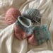 'Boudoir'. A super pretty semi-solid sock/4 ply yarn in soft pink, speckled with rainbow tones of blue, turquoise, fuchsia, leaf green, acid yellow and apricot.