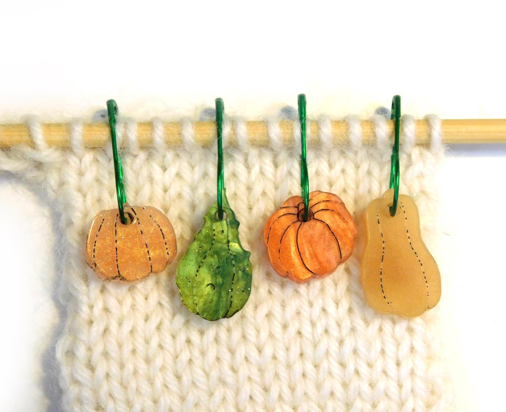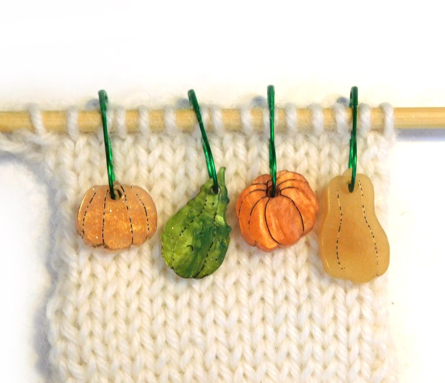 Pumpkins & Gourds Stitch Markers for knitting and crochet. Set of 4. Colour: Autumn Tones of shimmery /pearlescent swirl acrylic.