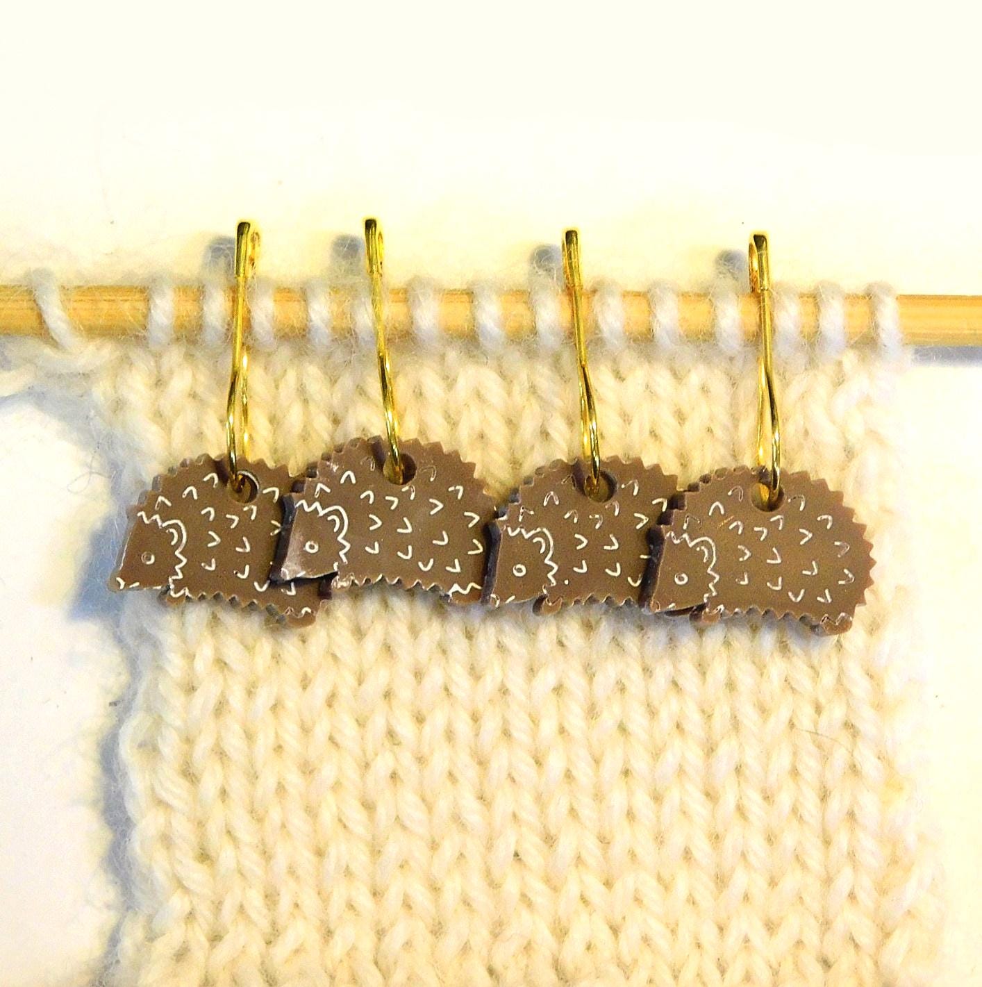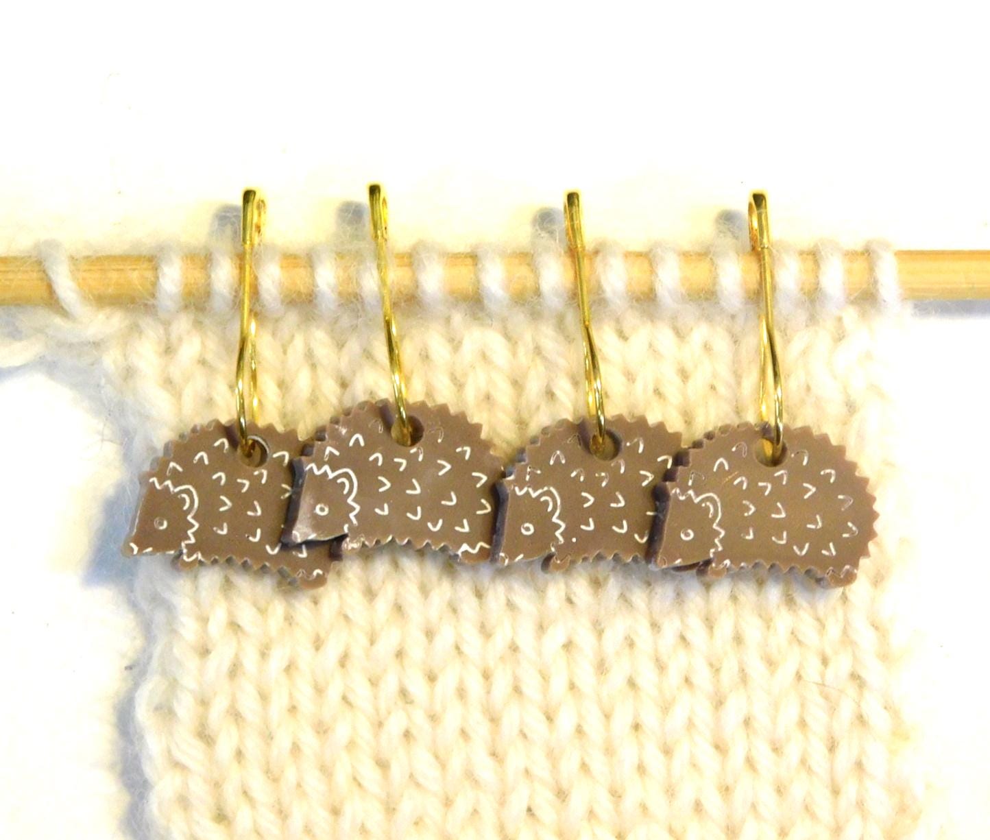 Autumn Hedgehogs Stitch Markers for knitting and crochet. Set of 4. Colour: Brown with white acrylic accents.