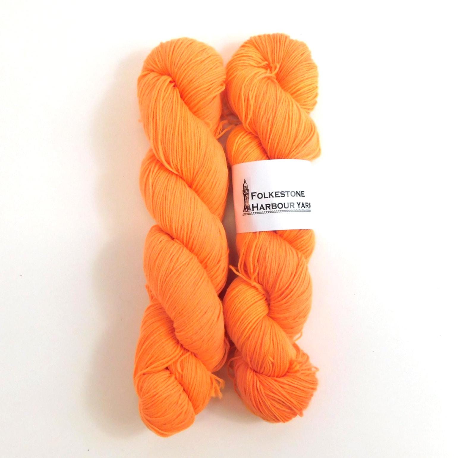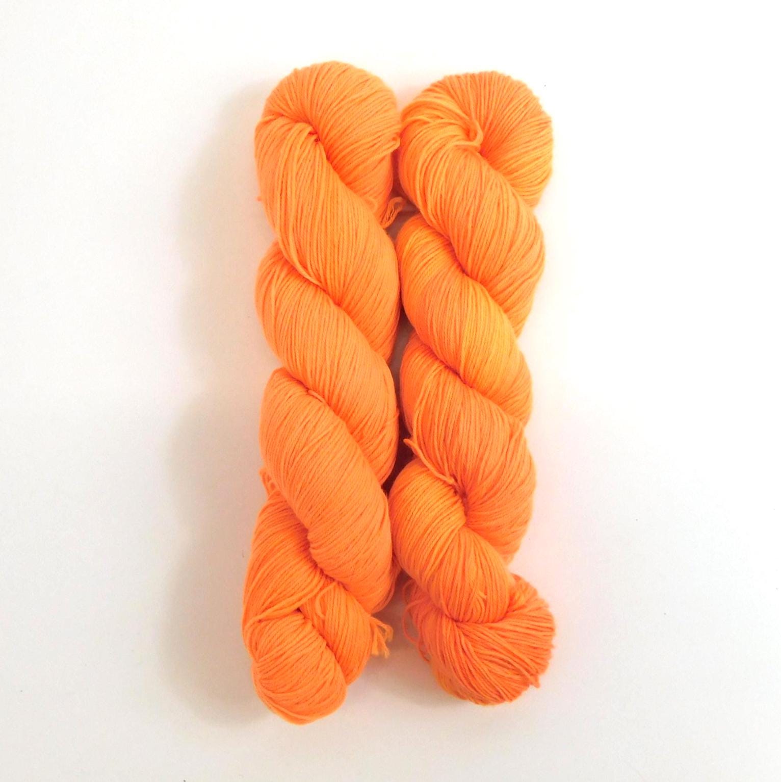 Fluorescent Light Orange Merino Blend Sock Yarn. This is a light orange tone, a darker, more saturated fluorescent orange tone is available elsewhere in this shop.