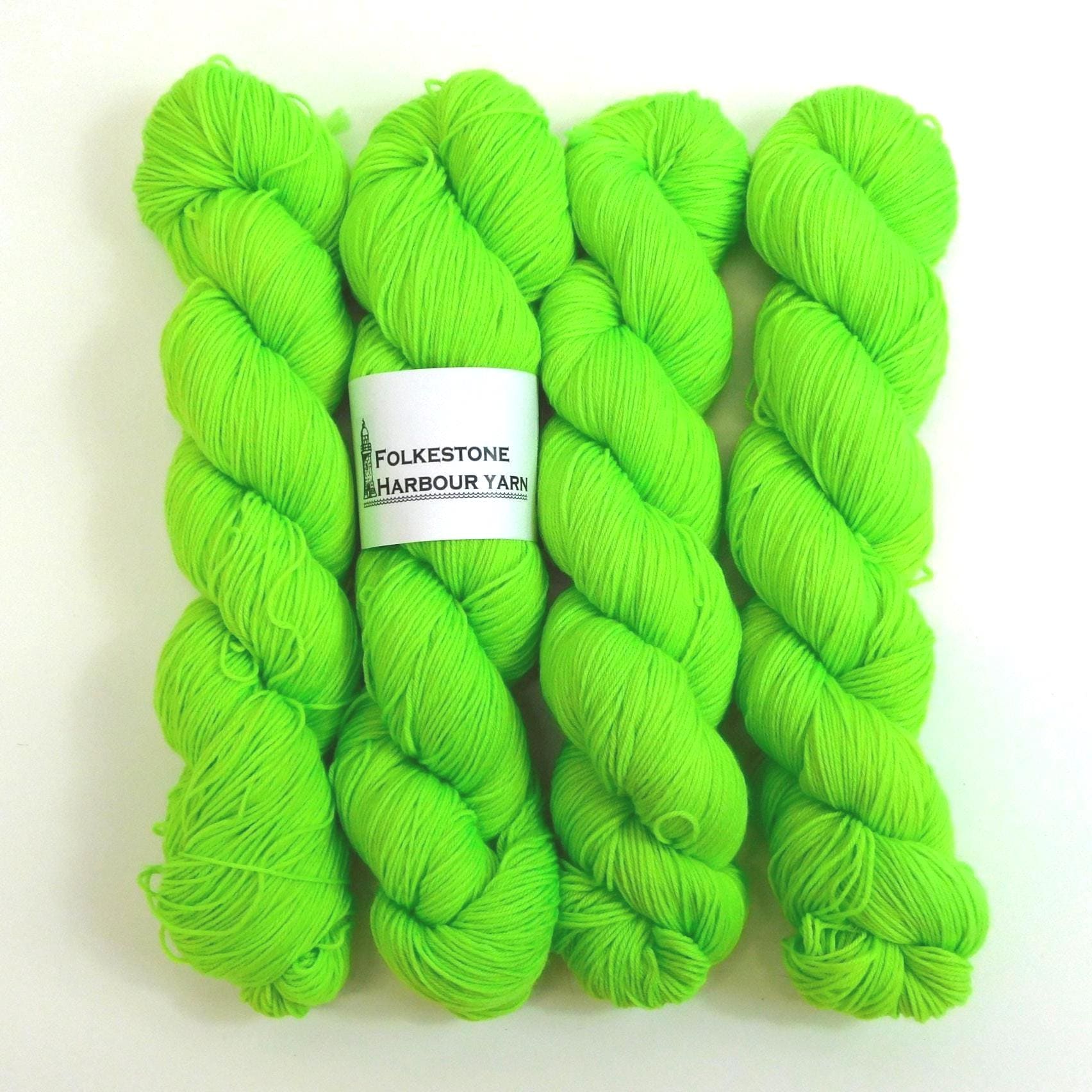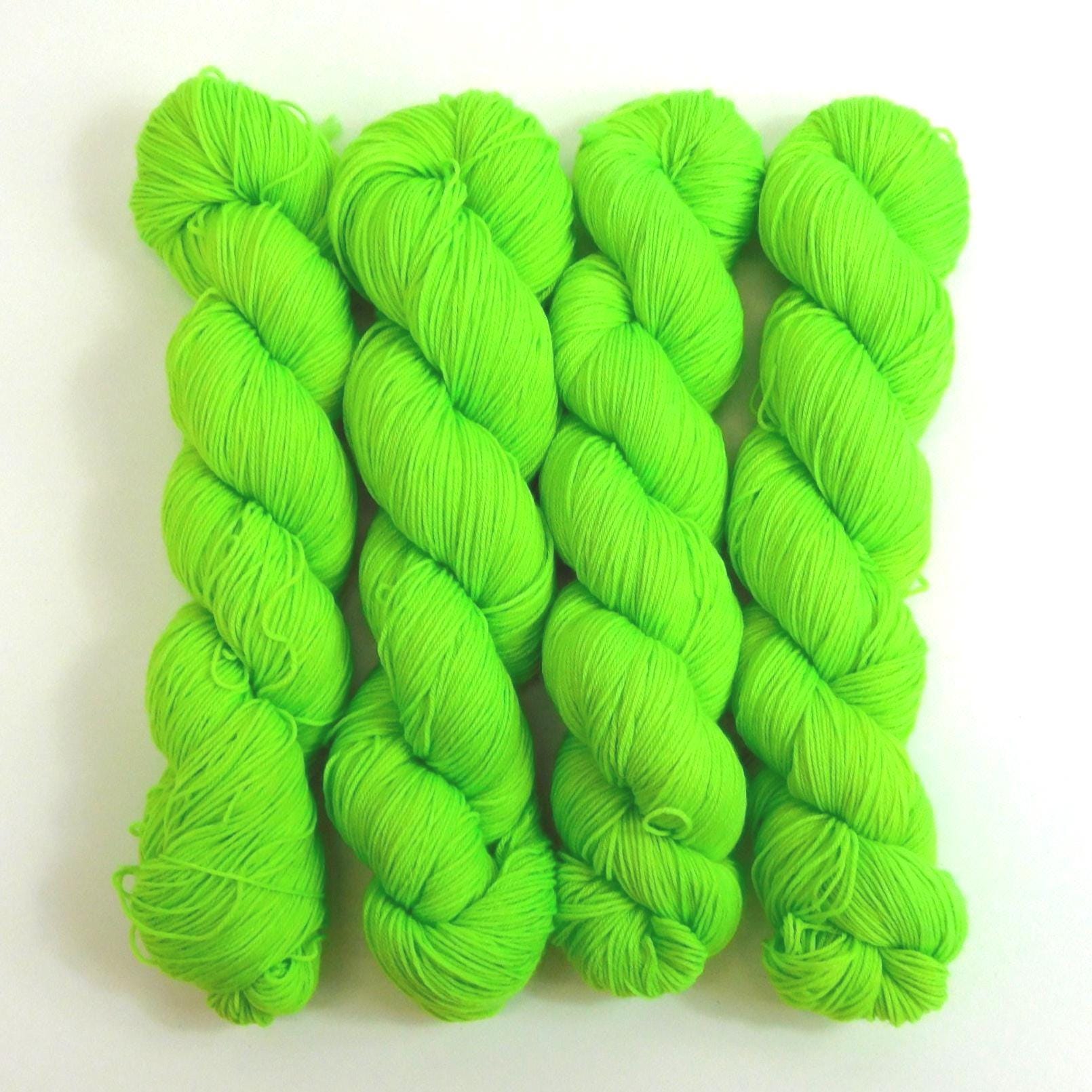 Fluorescent Light Green Merino Blend Sock Yarn. This is a light green tone, a darker fluorescent green tone is available elsewhere in this shop.