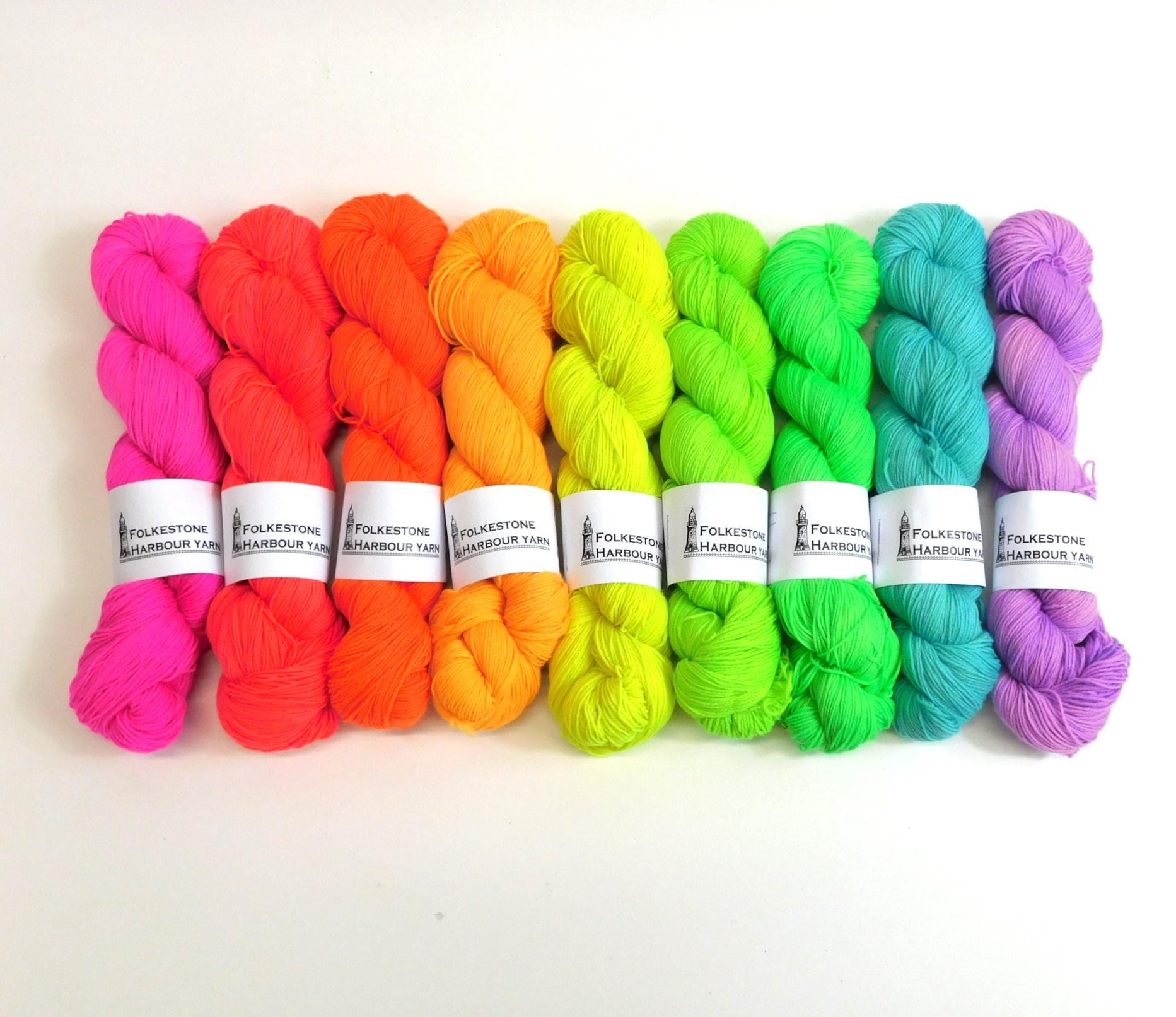 Hand dyed on our super soft merino sock base using genuinely fluorescent dye.