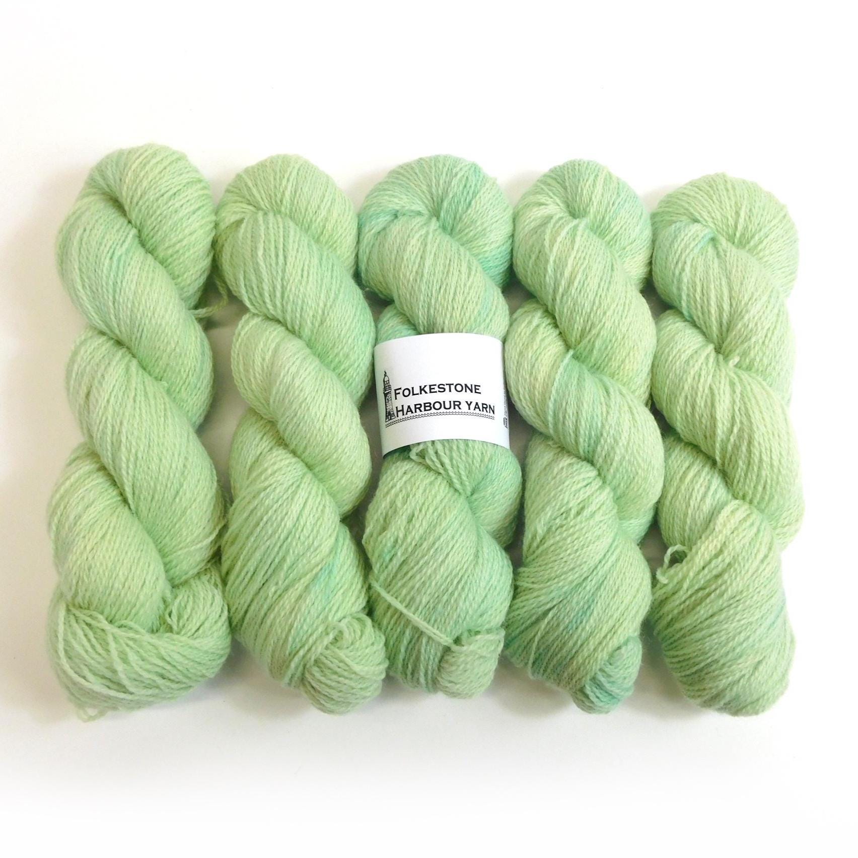 'Faversham'. Part of my Colours of Kent range. A pale minty green inspired by Faversham's famous Guildhall. Dyed on to the fibre of my local sheep breed, the Kent Romney.