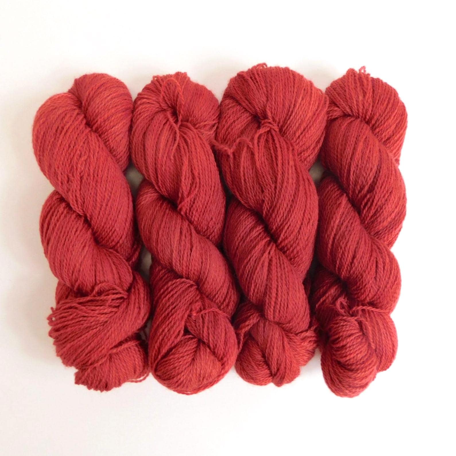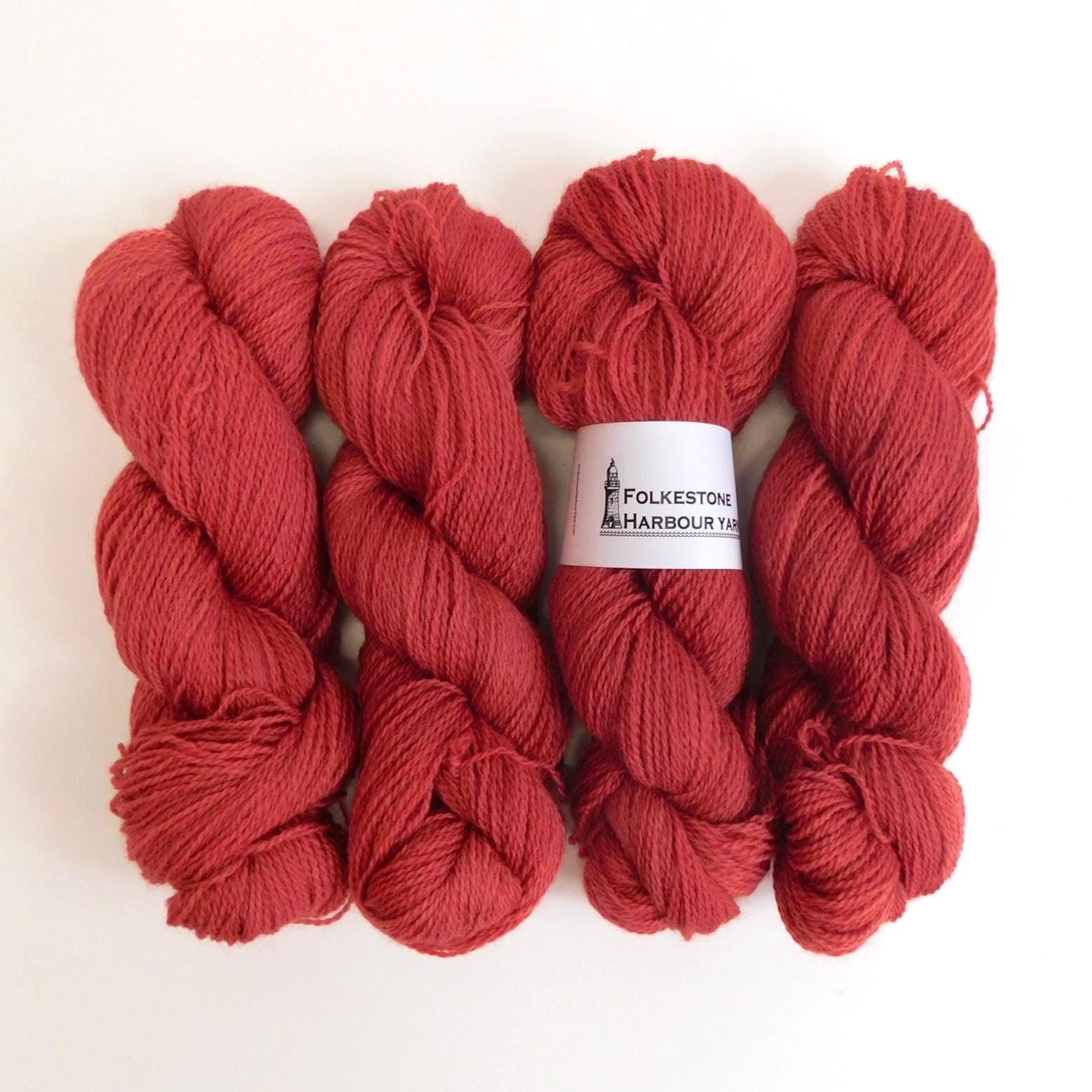 'Hythe'. Part of my Colours of Kent range. A muted russet red inspired by historical textiles. Dyed on to the fibre of my local sheep breed, the Kent Romney.