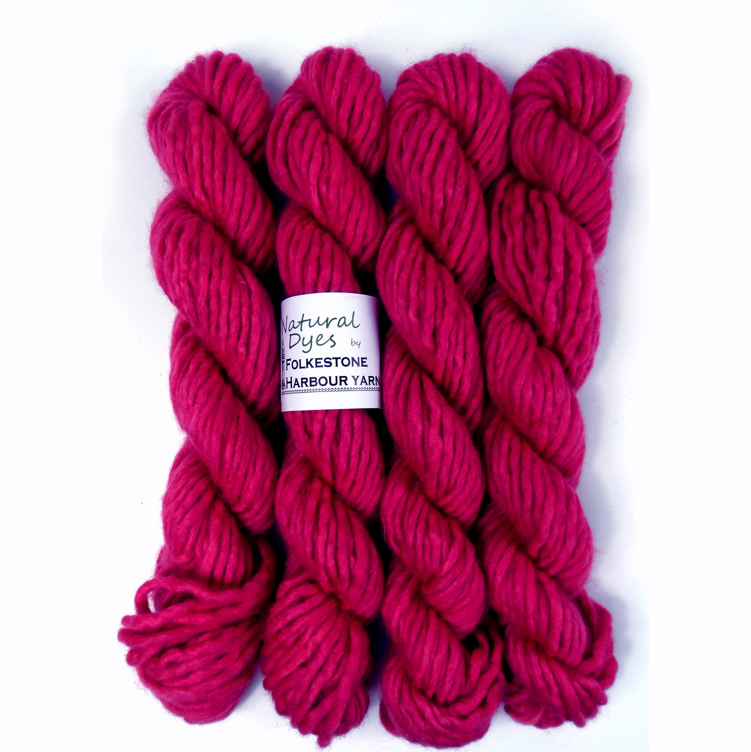 Berry Red Cochineal. A deep, rich berry tone red-pink on pure Corriedale sheep fleece.