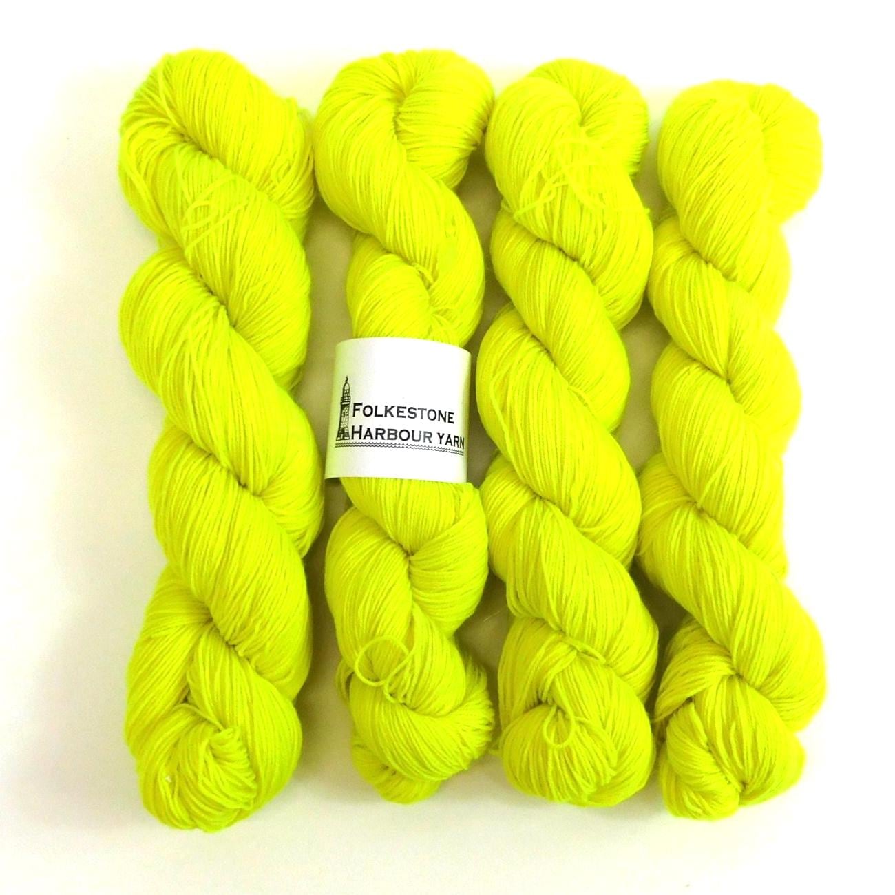 Fluorescent Yellow Merino Blend Sock Yarn.